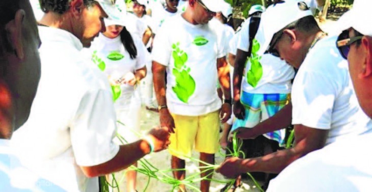 Un boletín de prensa de Martí Petroleum Group destaca que Torres les enseñó a los participantes en la jornada a fabricar o armar las sogas de un vivero de coral, lo que aseguró el éxito de la actividad.